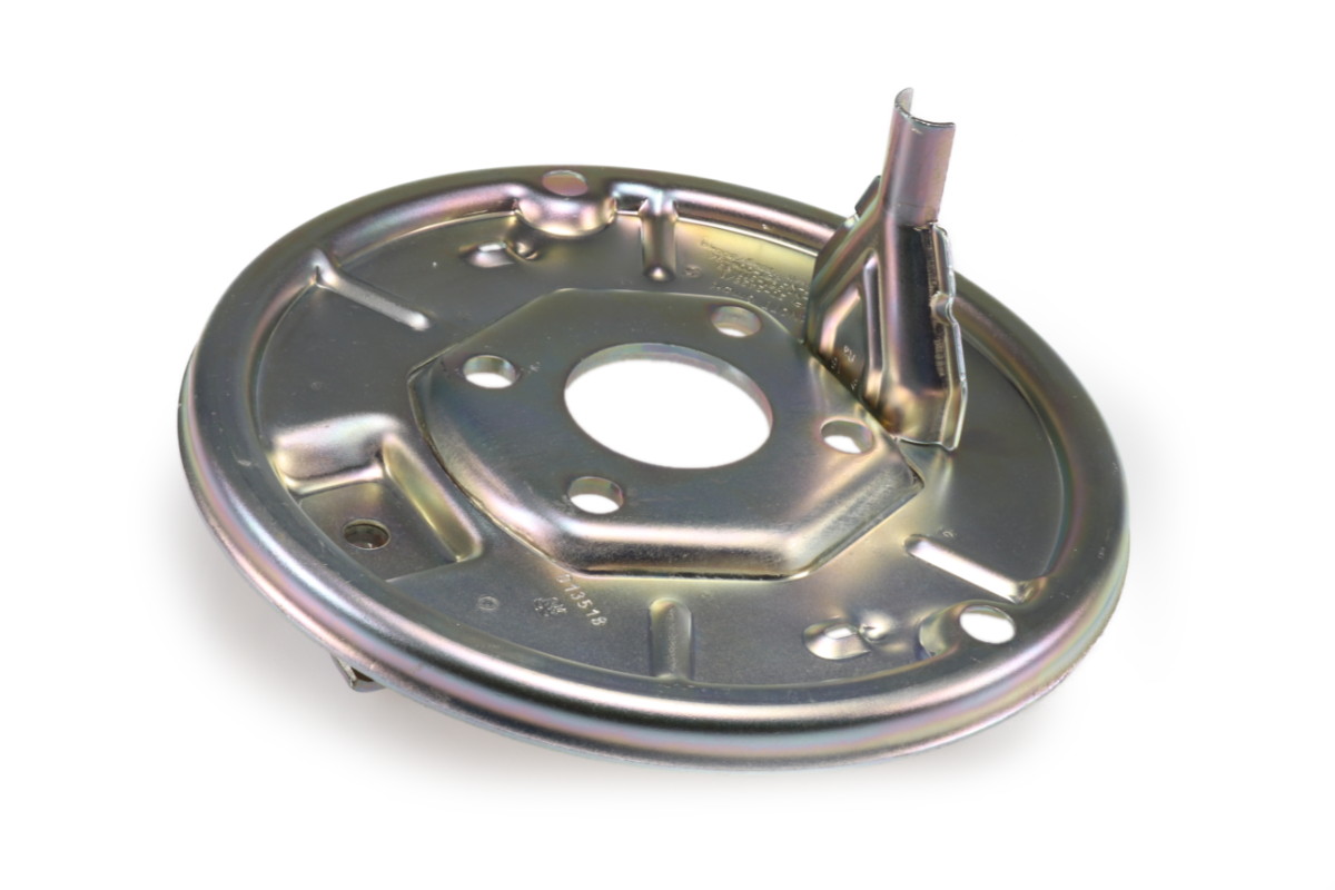 Brzdový štít pro nápravy KNOTT s kolovou jednotkou 200x50 s demontovatelnými brzdovými štíty. Pozor, štít nelze namontovat na běžné nápravy KNOTT, které mají brzdové štíty navařené!