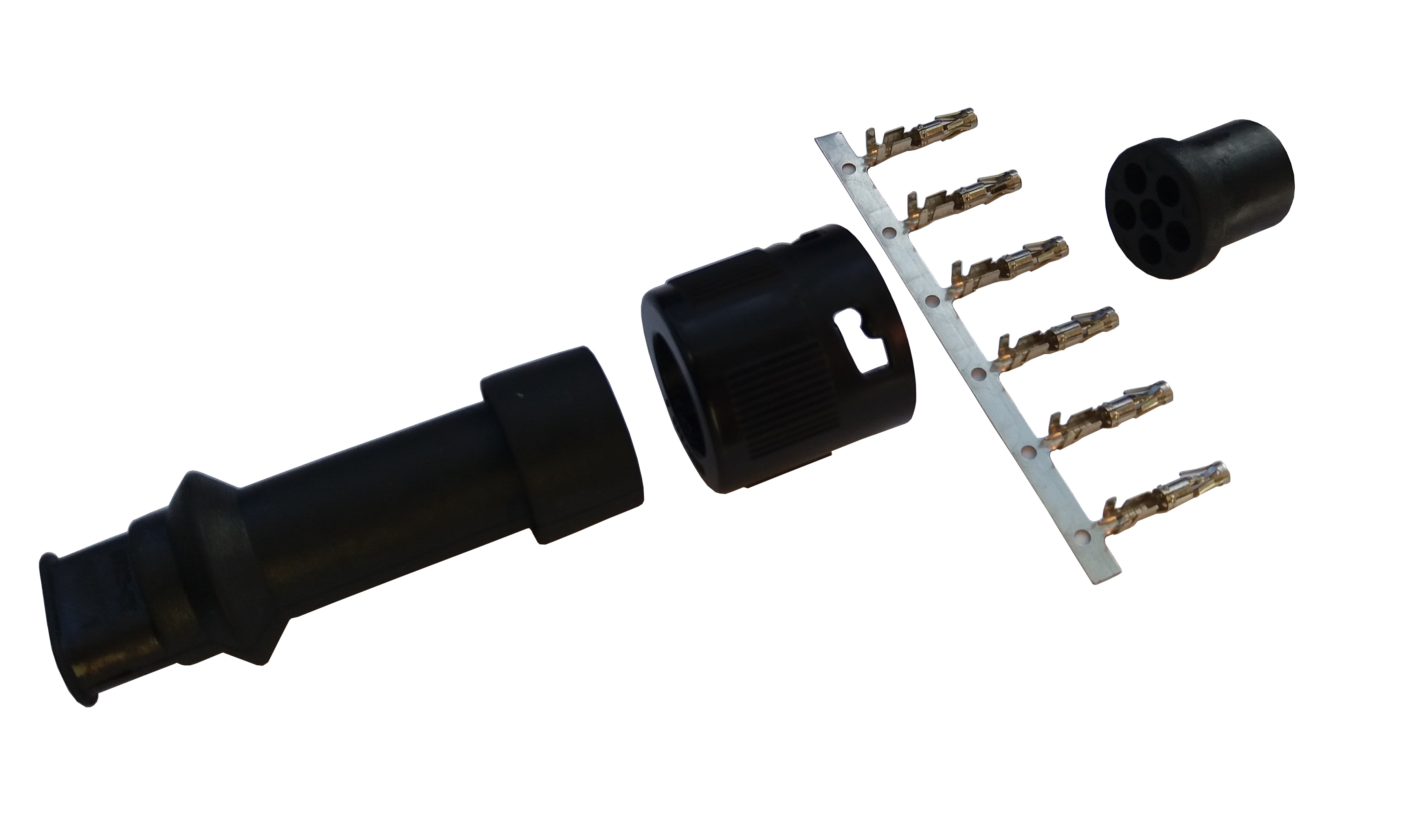 Černý bajonetový konektor určený pro svítilny Jokon, které mají připojení na 6-pinový bajonet. Tento bajonet není kompatibilní se svítilnami Lucidity a Fristom! Na šestipinové svítilny Fristom jej ovšem lze použít při pozměněném zapojení jednotlivých pinů dle uspořádání na těchto svítilnách. Provedení se dvěma vývody je primárně určené pro přívěsy, které jsou osazeny předními či bočními obrysovými světly. Jeden vývod se použije pro zavedení čtyřžilového nebo pětižilového kabelu do konektoru k napájední sdružené svítilny. Druhý vývod následně slouží pro vyvedení dvojžilového kabelu dále k dalším pozičním svítilnám.