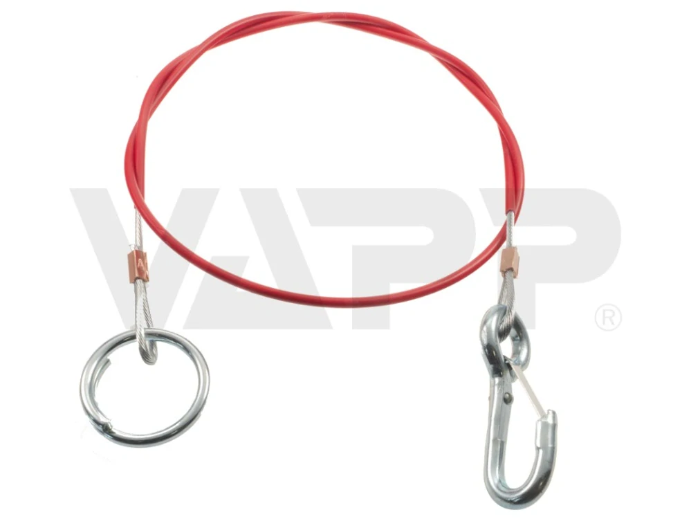 Originální pojistné lanko pro nájezdové brzdy AL-KO 200V. Lanko má délku 920 mm a je opatřeno háčkem, který se provléká otvorem v páce ruční brzdy a následně se zajišťuje ohnutím pomocí velkých kleští.