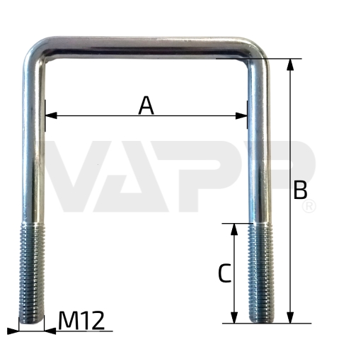 Třmen v rozměrech dle přání zákazníka. Dodáváno s válcovanými závity M12.
